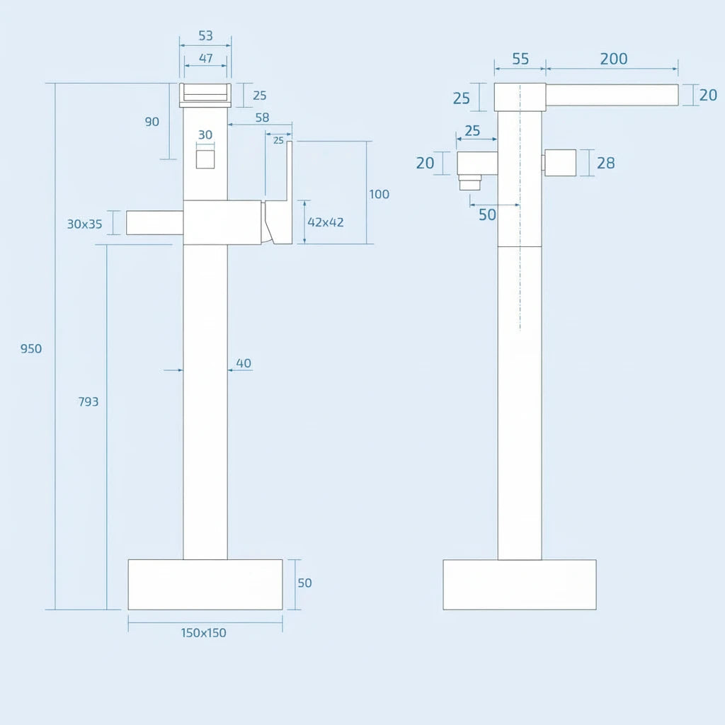 - Installation: **Floor-mounted installation** beside a freestanding bathtub.